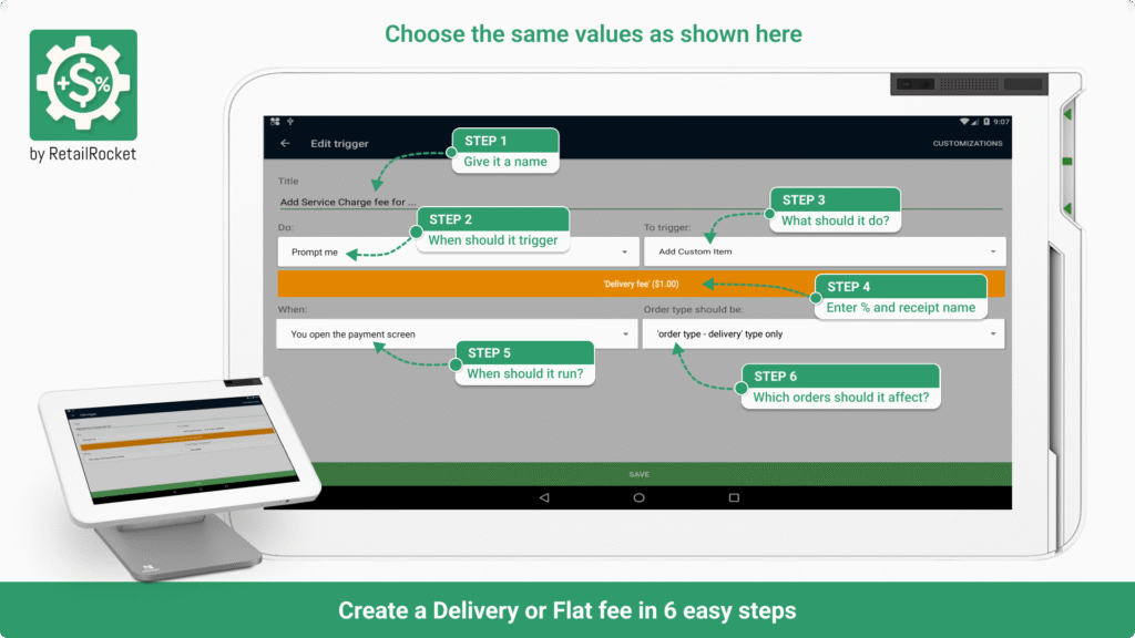 Set clear fee names that appear on receipts — improving customer understanding and trust.