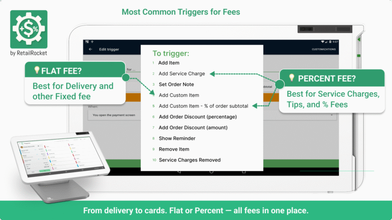 Apply fees without editing inventory prices — keep your menus, labels, and signs intact.