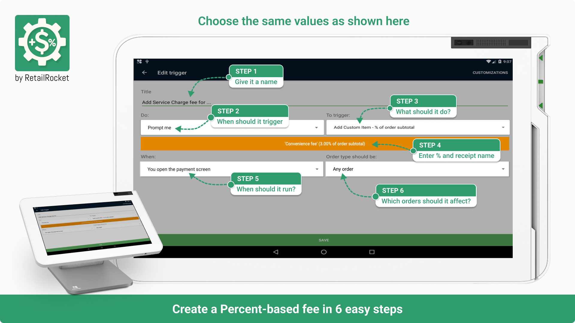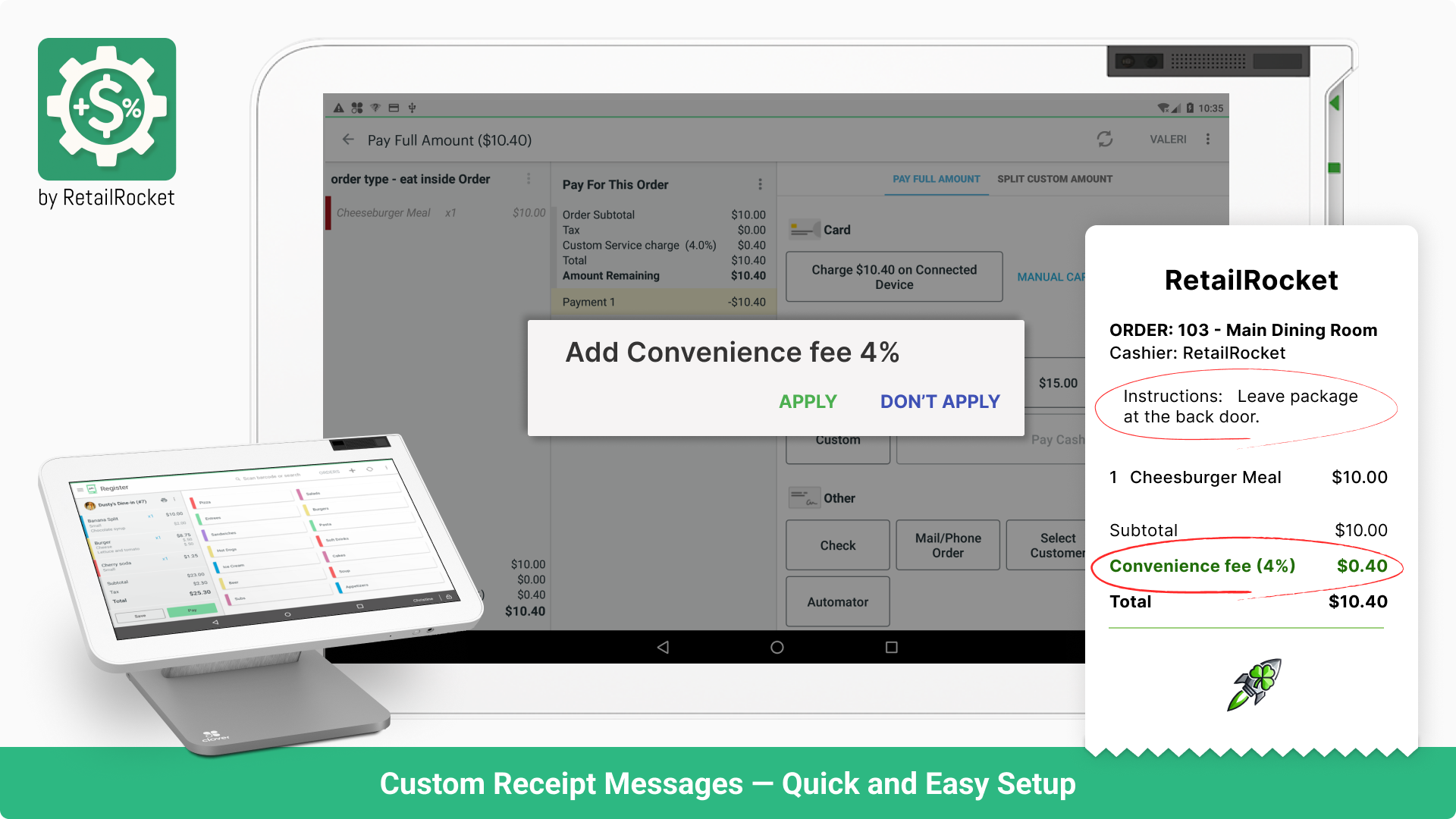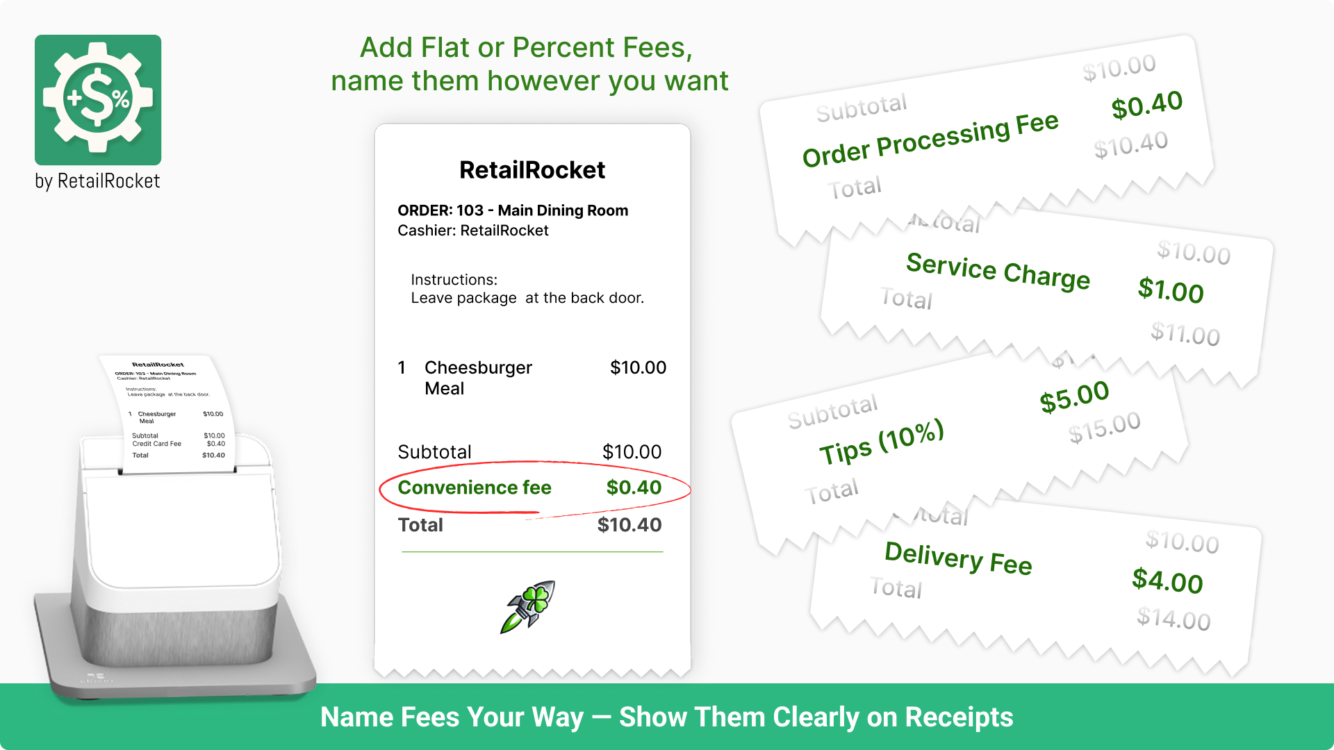 Set clear fee names that appear on receipts — improving customer understanding and trust.