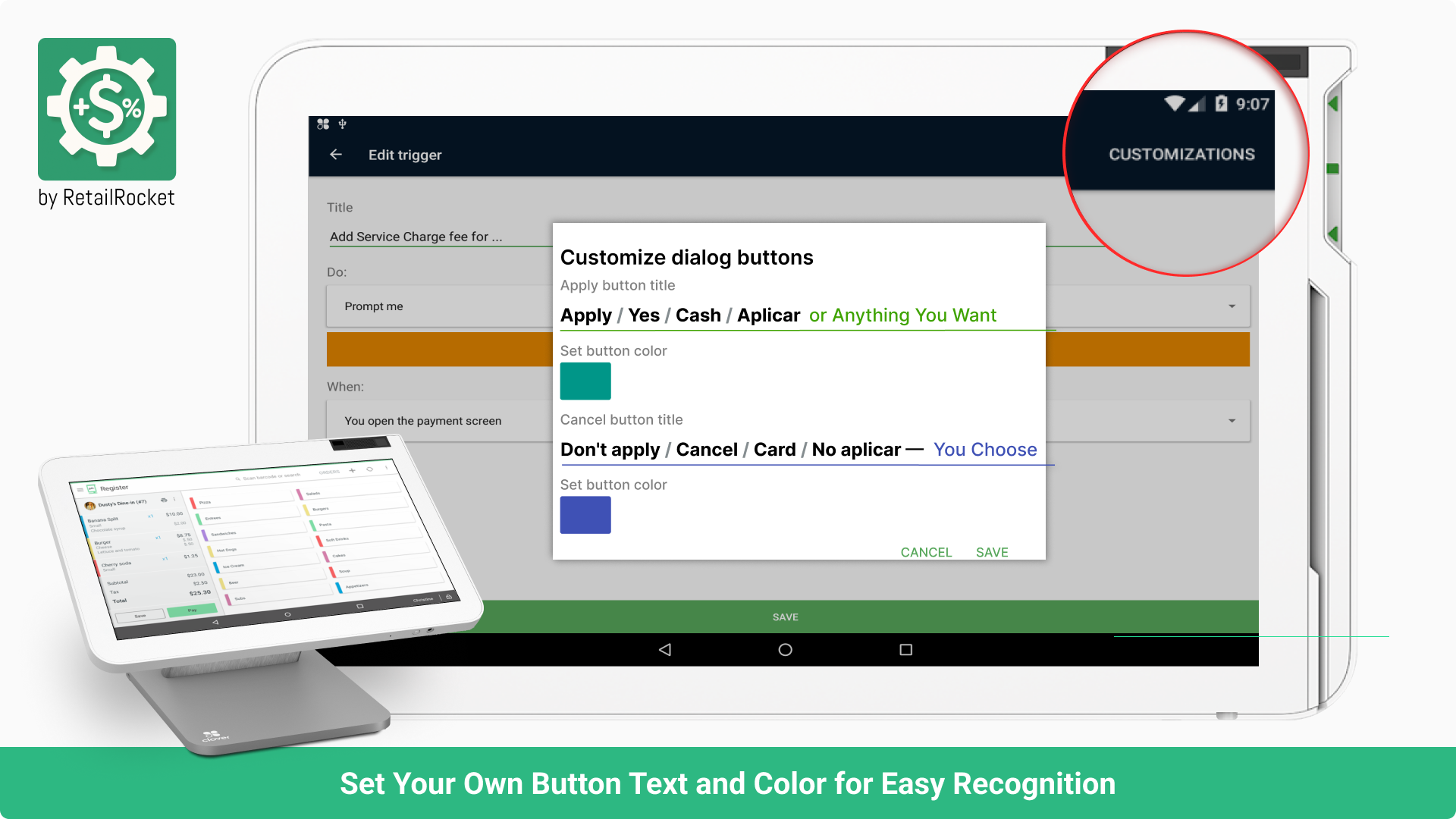 Name and color the checkout buttons for easier, faster staff actions during payment.