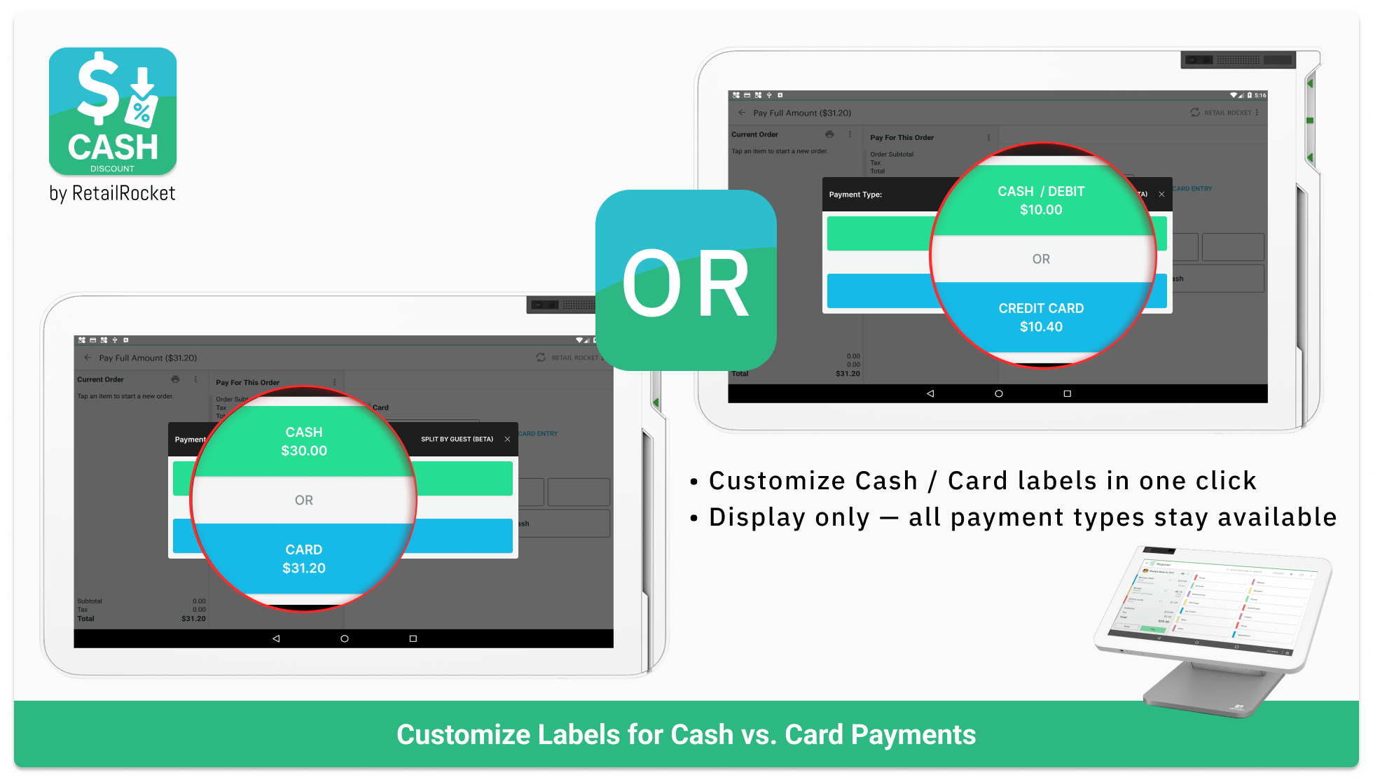 You can adjust payment type labels — show “Credit,” “Debit,” and “Cash,” or simply “Cards” and “Cash”