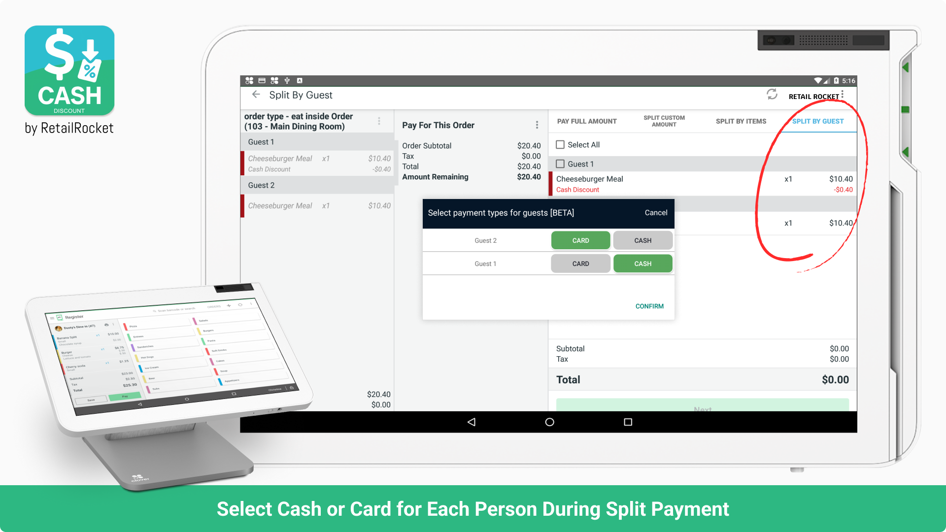Perfect for restaurants and bars — works with multi-party checks.